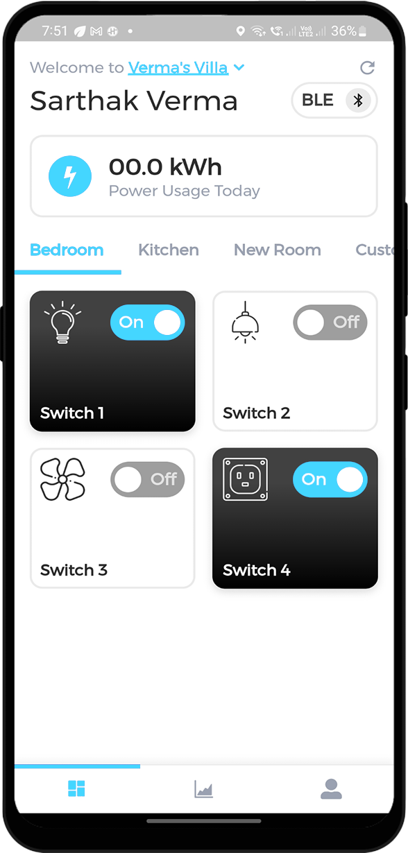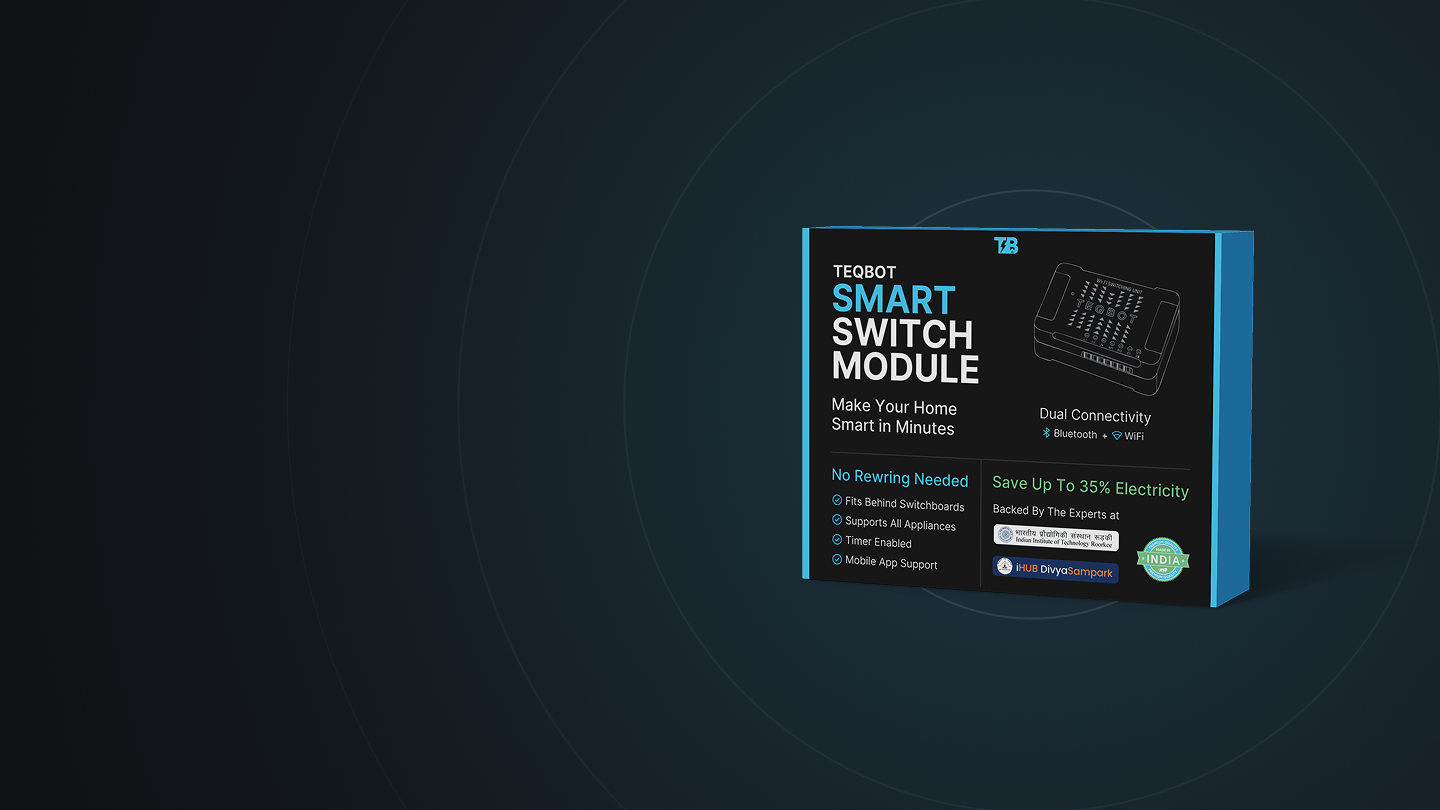 The Teqbot Smart Switch Module is a compact, retrofittable device that turns your ordinary switchboard into a smart home control hub — in just minutes. Compatible with all Indian switchboards, it offers effortless control of lights, fans, geysers, and more via your smartphone.